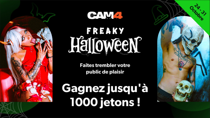 Du 24 au 31 octobre, portez votre costume d’Halloween le plus sexy lors d’un show et postez une photo sur votre Mur CAM4 pour pouvoir gagner jusqu’à 100 $ !