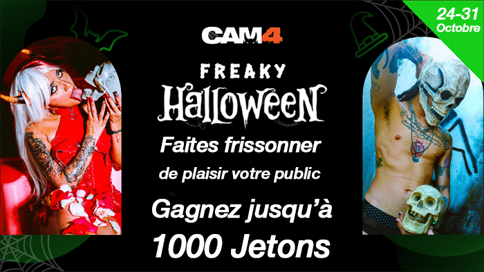 Du 24 au 31 octobre, portez votre costume d’Halloween le plus sexy lors d’un show et postez une photo sur votre Mur CAM4 pour pouvoir gagner jusqu’à 100 $ !
