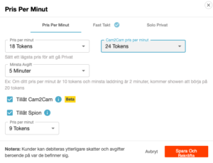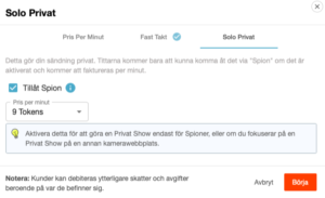 3.  Endast tokens som gjorts genom att utföra Privat Shower ( per minut räkning, per tidsblock  eller  betalda av Spioner) och Gruppshower räknas.